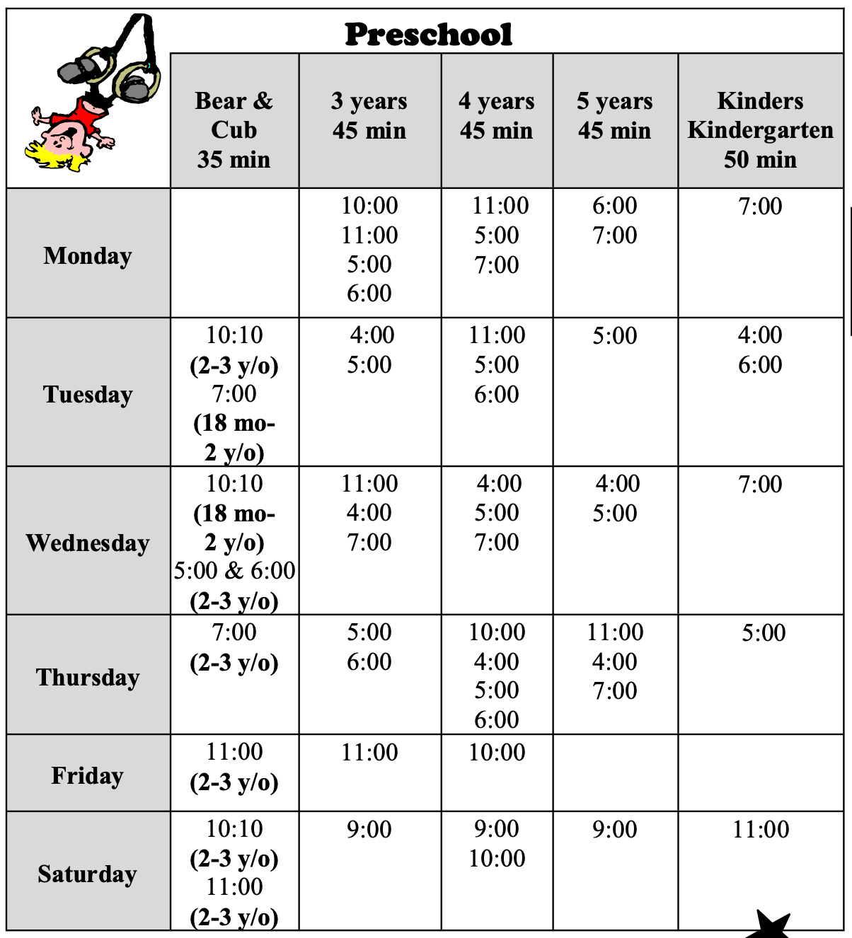 - Preschool Open Gym for ages walking-5: First and Third Friday of each month