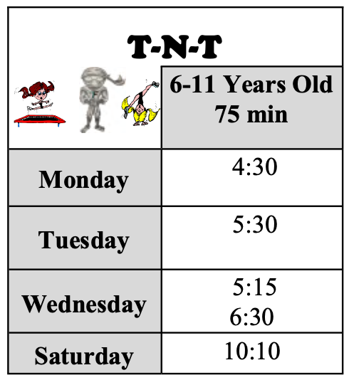 - Adult Open Workout for ages 18+: Sundays 6:00pm-7:30pm