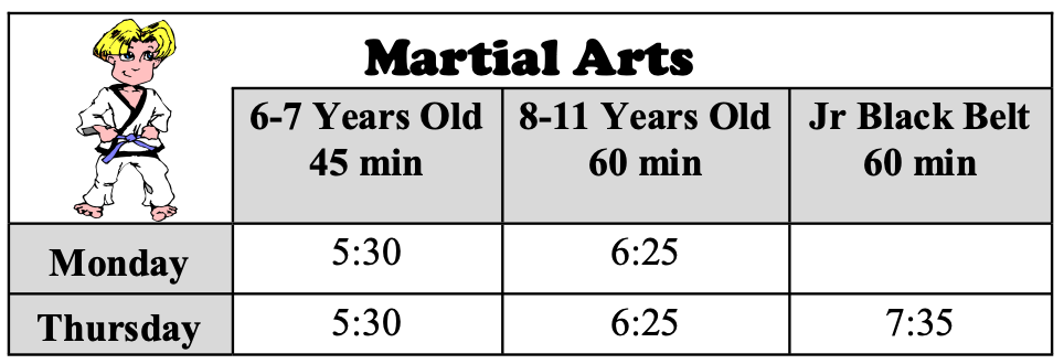 - School-age Open Workout for ages 6 – 16: Sundays 1:00 – 3:00pm